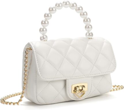Girls Purses for Kids, Toddler Crossbody Bag with Pearl Handle, Kids Chain Handbag Heart Purses for Girls