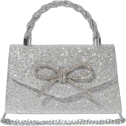 Women Evening Bag Sparkly Bow Clutch Purses Wedding Glitter Rhinestone Clutch Bags Dressy Handbags for Party, Prom