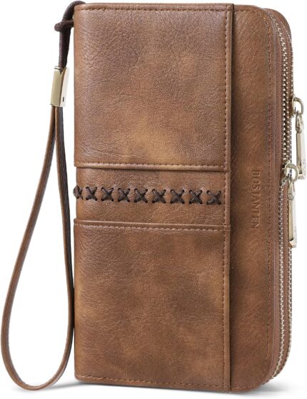 BOSTANTEN Wallets for Women Leather RFID Double Zipper Around Credit Card Holder Large Capacity Wristlet Clutch Wallet