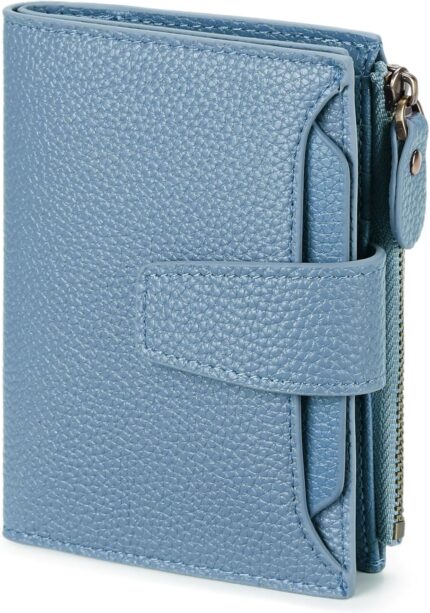 FALAN MULE Small Wallet for Women Leather Bifold Compact RFID Blocking Small Womens Wallet Purse, Blue, Casual