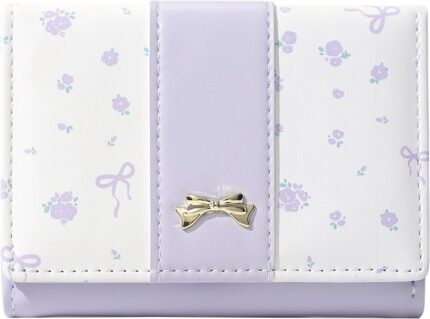 Small Wallet Floral Coquette Bow Wallet Cute Wallet ID 7 Credit Card Slots for Women Girls, PURPLE