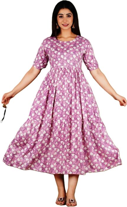 INDACORIFY Premium Rayon Pink Coloured Flared Gown/Frock Casual Dress for Work Office Party Dates