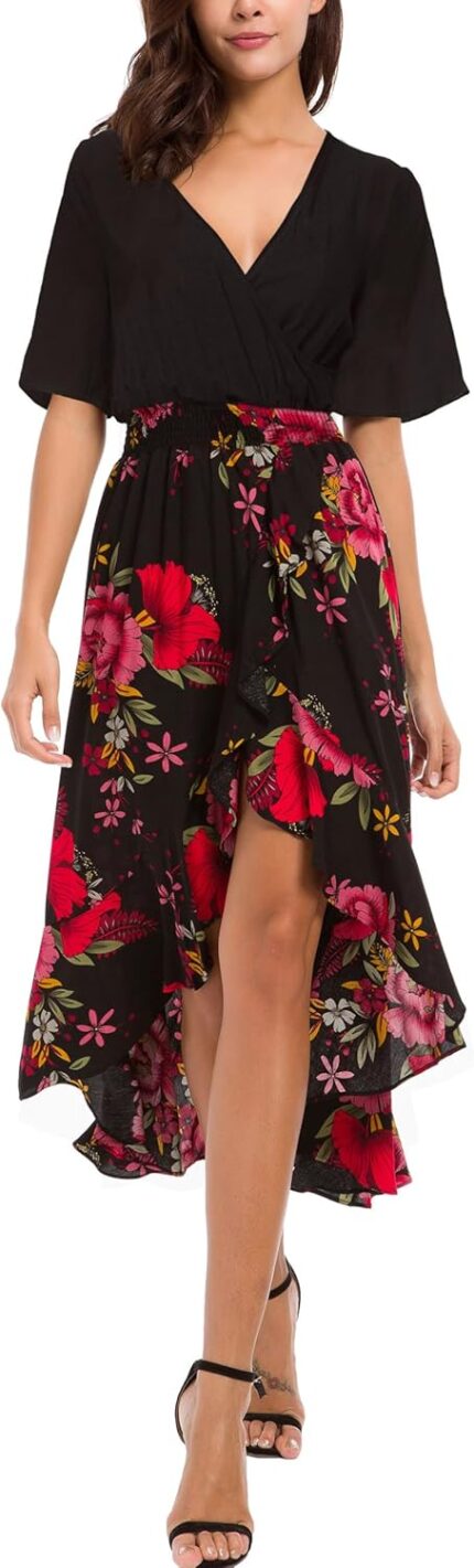 Price: (as of – Details) KorMei Women’s Short Sleeve Floral High Low V-Neck Long Maxi DressFeatures: Floral Print, V Neck,