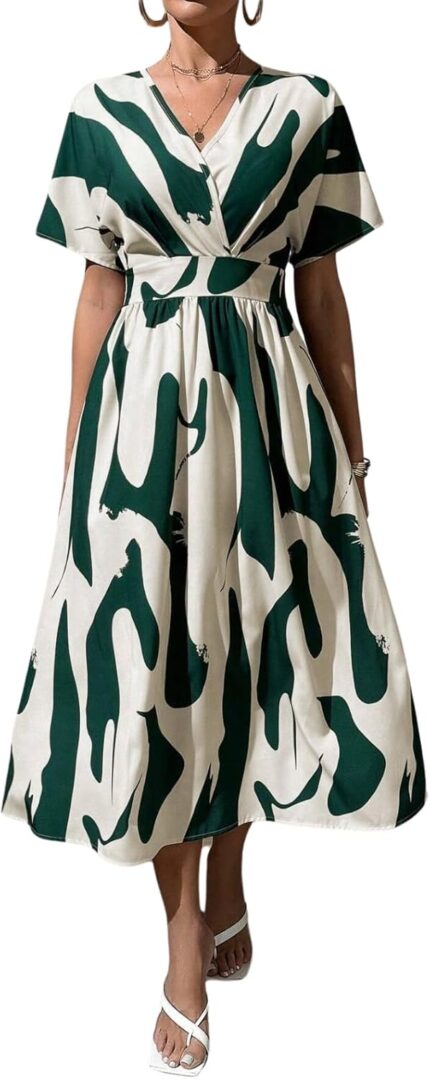 Price: (as of – Details) PRETTYGARDEN Women’s Floral Summer Dress Short Sleeve Stretchy Waist Part Deep V-Neck Boho Beach Dresses