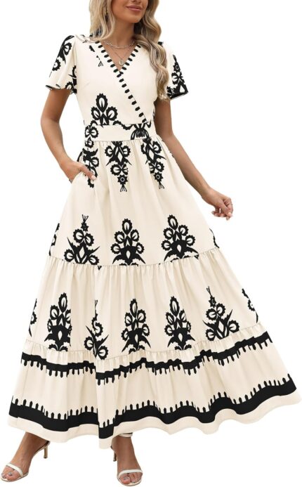 Price: (as of – Details) PRETTYGARDEN Women’s Floral Summer Dress Short Sleeve Stretchy Waist Part Deep V-Neck Boho Beach Dresses