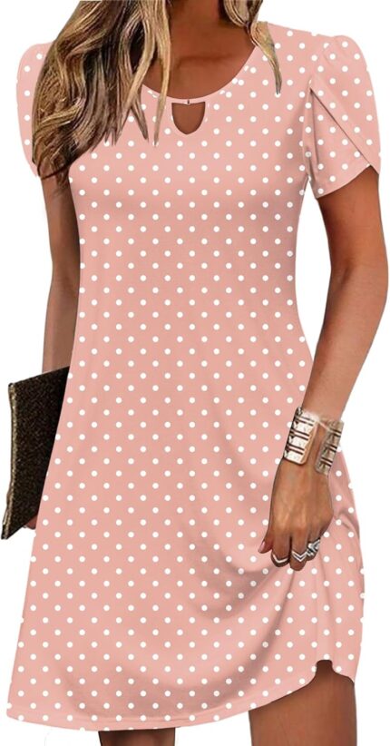 Zeagoo Womens Casual Dresses for Summer Short Sleeve Flare Midi Dress Loose Flowy Beach Sundress