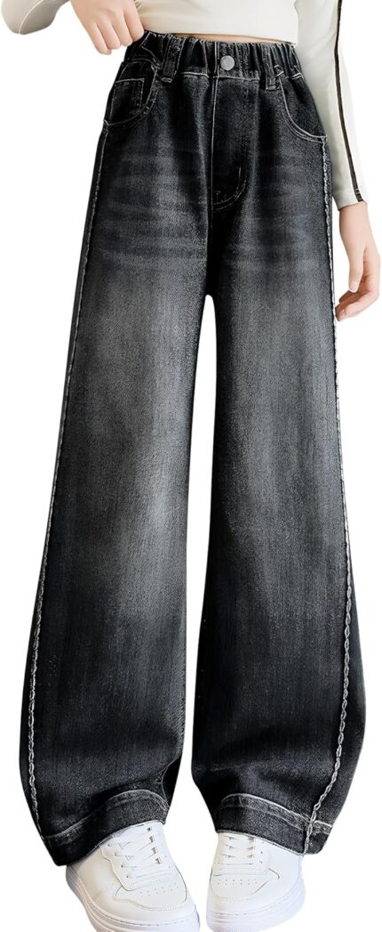 Price: (as of – Details) Domueay Jeans Girls Baggy Denim Pants Wide Leg Jeans Elastic Comfortable Trousers with Elastic Waistband