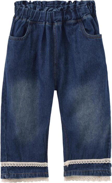 Girls Lace Jeans Kids Casual Elastic Waist Harem Denim Pants with Pockets 2-10 Years