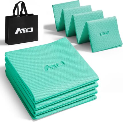 AYO Yoga Mat, Foldable, 0.2 inch (6 mm) Thick, Training Mat, Wide, Lightweight, Popular, Convenient to Carry, Includes Yoga Mat Bag, Compact (68.1 x 24.0 inches (173 x 61 cm), For Stretching, Fitness
