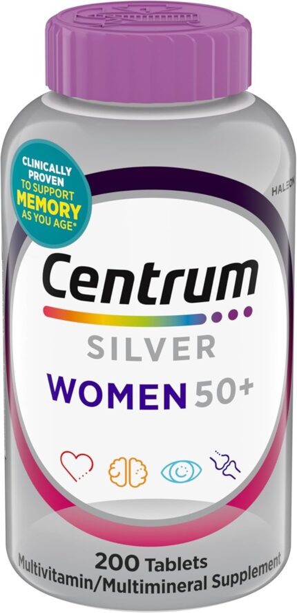 Centrum Silver Women’s Multivitamin for Women 50 Plus, Multivitamin/Multimineral Supplement with Vitamin D3, B Vitamins, Calcium and Antioxidants, Gluten Free, Non-GMO Ingredients – 200 Count
