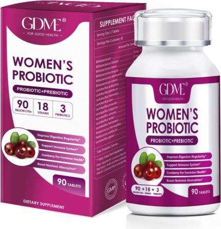 Price: (as of – Details) GDME Women’s Probiotics, 90 Tablets 90 Billion CFU 18 Strains, Contains Organic Prebiotic Cranberry,Probiotic Supplement