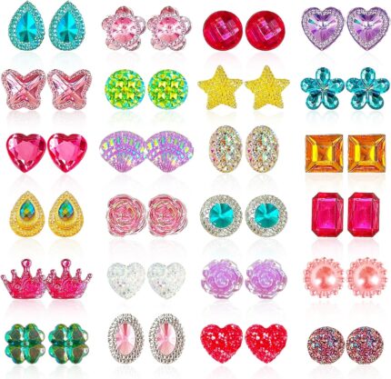 EleMirsa 16/24 Pairs Clip On Earrings Little Girl Party Favor Princess Clip on Earrings Dress Up Pretend Play Earrings for Little Girl Kids Toddlers Jewelry Set