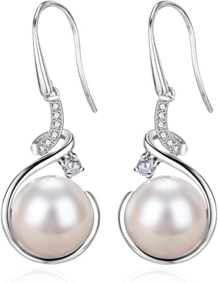 Handpicked AAA+ Quality Freshwater Cultured Silver Pearl Earrings for Women Dangle Stud Pearl Earrings Birthday Present