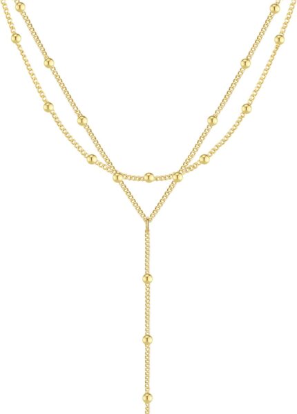 Gold Necklace for Women, Dainty Long Necklace 14k Gold Plated/Silver Y-Shaped Pendant Necklace Trendy Layered Cz Beaded Chain Lip chain Drop Necklaces for Women Gift Jewelry