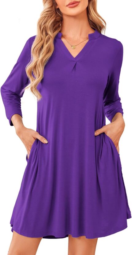 ZENNILO Women’s 3/4 Sleeve Dress V Neck Plus Size Tshirt Dress for Women Knee Length with Pockets