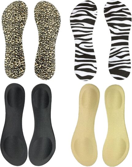 Happystep 3/4 Length Thin Shoes Insoles for High-Heels and Sandals, Cushion for Heel and Ball of Foot, Black, Beige, Zebra and Leopard 1 Pair each (Women Size 35-37)