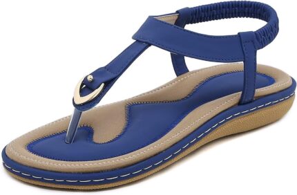 Women Summer Flat Sandals Casual T-Strap Flip Flops with Elastic Ankle Strap for Beach