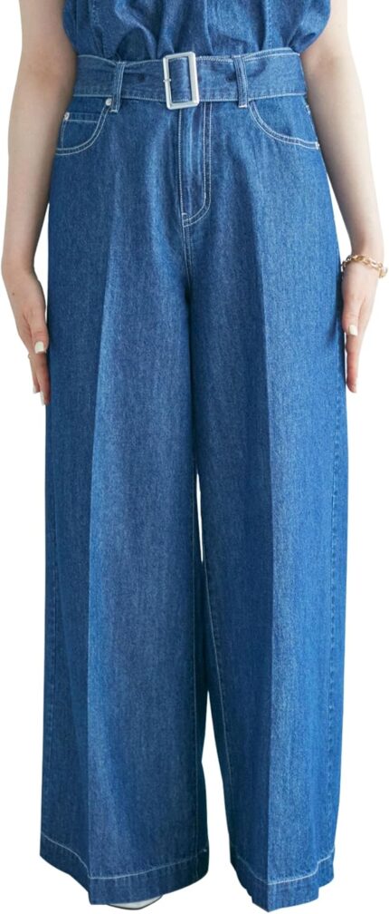 [VIS] ジーンズ 【セットアップ対応】ベルト付きセンタープレスワイドデニムパンツ【洗える】 レディース