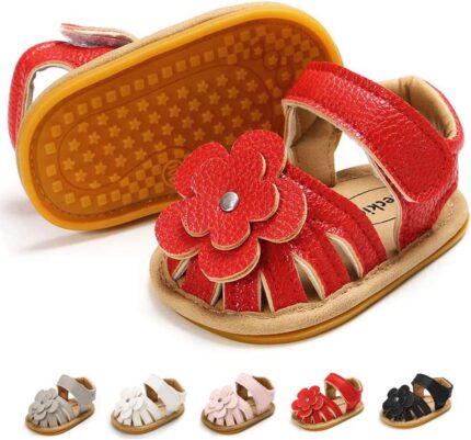 Babelvit Infant Baby Girl Boy Sandals Comfort Premium Summer Outdoor Casual Beach Shoes with Flower Bowknot Anti Slip Rubber Sole Newborn Toddler Prewalker First Walking Shoes