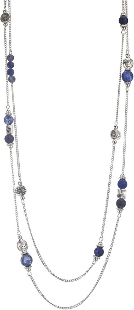 Beaded Long Necklace for Women Silver Sweater Chain Necklace with Crystal Resin Beads, Fashion Jewelry for Girls