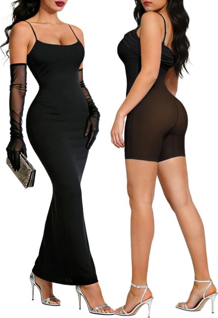 Popilush Shapewear Dress Maxi Women Bodycon Shaper Dress Built in Shapewear Bra Black Casual Elegant Long Slip Summer Dresses