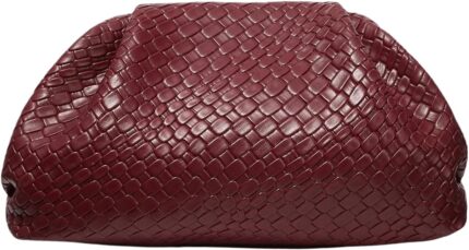 QWINEE Women’s Woven Evening Bag Dumpling Clutch Purse No Strap Handbags Elegant Faux PU Leather Clutch Bag, Burgundy, One Size