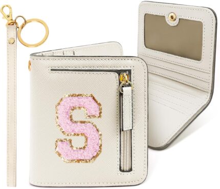 COSHAYSOO Cool Valentines Birthday Gift Ideas Initial Wallet for College Teenage Girls Slim RFID Blocking Bifold Wallet Travel Essentials Coin Cash Cards Organizer Purse Chenille Letter S Cream,