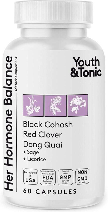 Hormone Balance for Women PMS & Menopause Relief Support Pills | Ease Female All Stages Hormonal Imbalance w Natural Herbal Supplements | Black Cohosh Red Clover Dong Quai Soy Isoflavones Complex