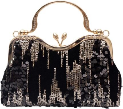 CORIOS Vintage 1920s Clutch Bag Women Velvet Evening Bag Sparkly Sequin Handbag Crystal Shoulder Bag Bridal Wedding Purse