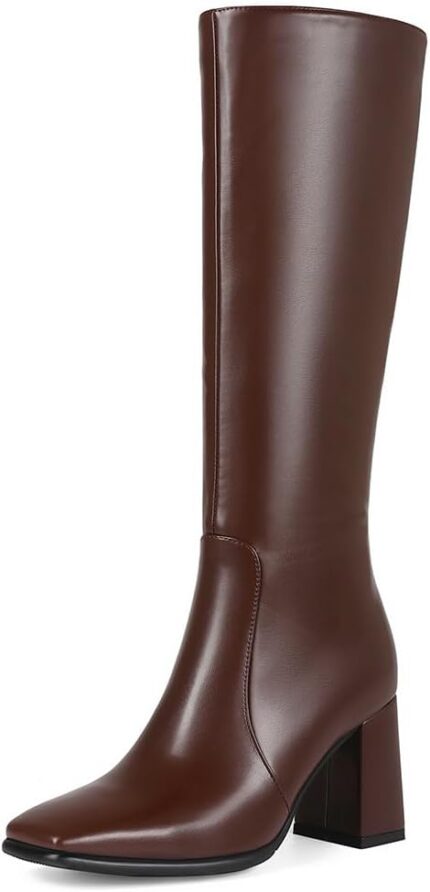 Price: (as of – Details) The fashionable square toe knee high boots sturdy chunky heel boots are made of high-quality