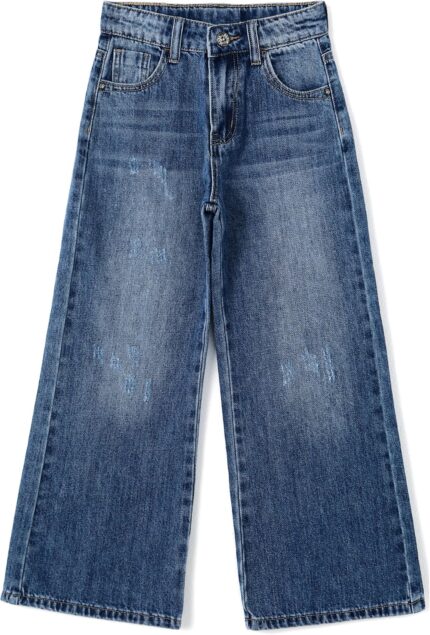 KIDSCOOL SPACE Girl Jeans,Kids Ripped Wide Leg Slim Fit Flared Boot Cut Denim Pants