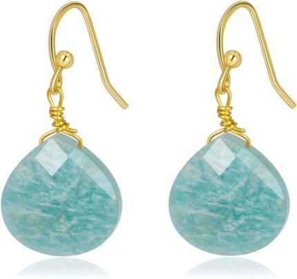 Geometric Crystal Earrings for Women Healing Teardrop Rectangle Stone Drop Dangle Earrings Gold Fishhook Earrings Jewelry for Women
