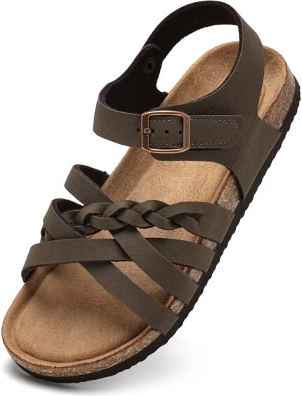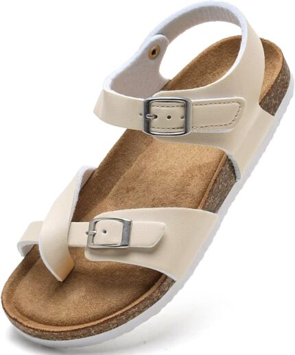 Price: (as of – Details) Torotto Girls Sandals with Cork Footbed Adjustable Buckle Casual Slides Sandals Open Toes Flat for
