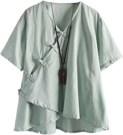 Minibee Women’s Linen Retro Chinese Frog Button Tops Blouse