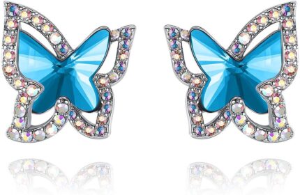 GEMMANCE Butterfly Crystal Stud Earrings for Women with Premium Birthstone, Silver-Tone – Mother’s Day Valentine’s Day Jewelry – Gifts for Women Mom Wife Daughter Girlfriend