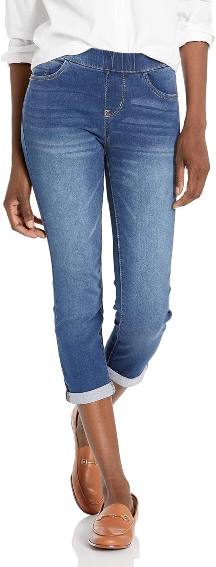 WallFlower Women’s Pull on Denim Crop and Ankle High-Rise Insta Soft Juniors Jeans (Available in Plus Size)