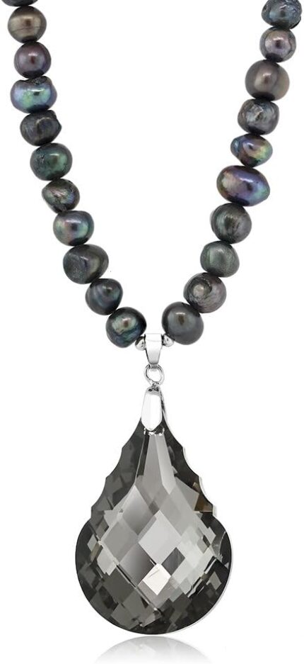 Gem Stone King Black Dyed Cultured Freshwater Pearl Faceted Pendant Necklace 16 Inch with 2 Inch Extender