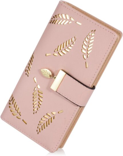 Women’s Long Leaf Bifold Wallet Leather Card Holder Purse Zipper Buckle Elegant Clutch Wallet Handbag for Women, Pink…, One Size, Bifold Wallet