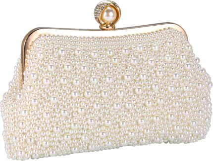 CHIC DIARY Pearl Clutch Purses for Women Evening Handbag Wedding Bridal Crossbody Bag for Party
