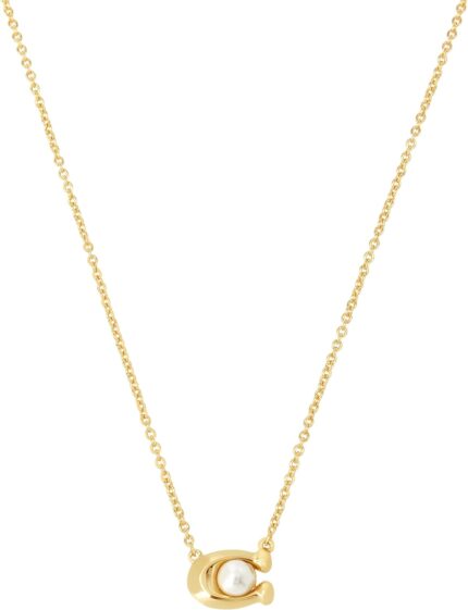 COACH Pearl C Short Pendant Necklace White Pearl One Size
