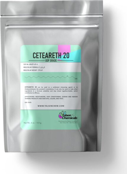 Ceteareth-20 Powder Ceteryl Alcohol Emulsifying Wax for Cosmetics and Personal Care Products, Ceteareth-20 Formulation Stabilizer (4 Ounce / 113 Grams)