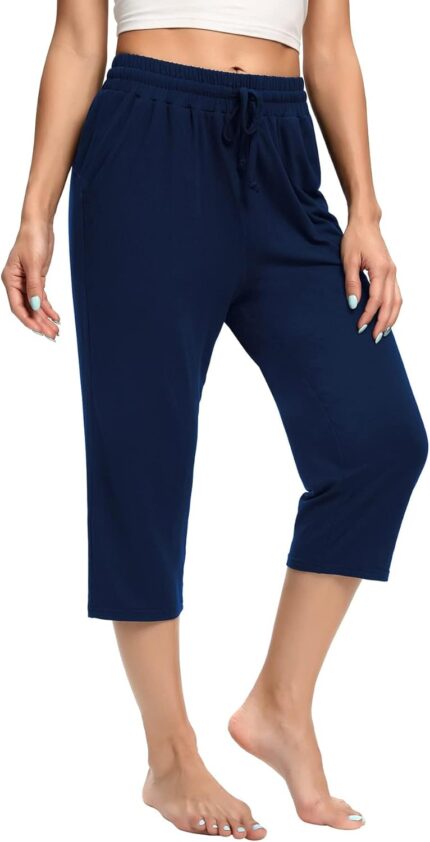 Women’s Capri Yoga Pants Quick Dry High Waisted Hiking Lightweight Pants Drawstring Outdoor Pants for Women
