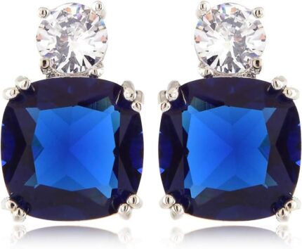 [RIZILIA CLASSIC] Stud Pierced Earrings with Cushion Cut Gemstones CZ [Multi-Colors available] in 18K White Gold Plated, Simple Modern Elegant