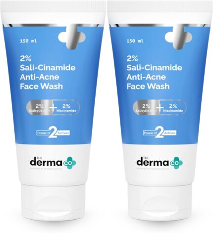 The Derma Co 2% Sali-Cinamide Anti-Acne Face Wash | With 2% Salicylic Acid & 2% Niacinamide | Treats Active Acne & Fades Marks I For Oily & Combination Skin | Power of 2 Actives | For Men & Women |