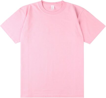 Pure cotton short sleeved T-shirt with solid color base, pink round neck top for women and men