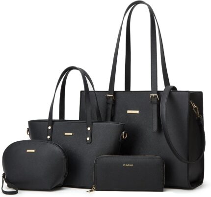 Women Fashion Synthetic Leather Handbags Tote Bag Shoulder Bag Top Handle Satchel Purse Set 4pcs