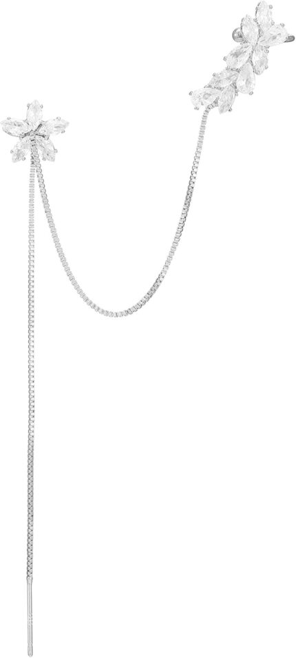 Ear Cuff Earrings for Women Gold Ear Cuff Stud Earrings Rhinestone Long Chain Flower Tassel Cuffs Earrings for Girls