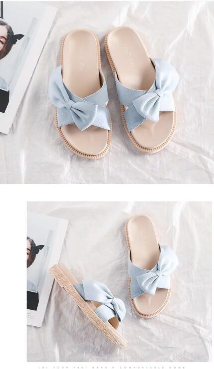 Women’s Bow Tie Cross Sandals Lightweight Beach Sandals Synthetic Leather Fashion Slippers