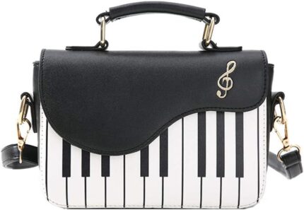 Piano Guitar Music Notes PU Leather Shoulder Tote Bag Purse Crossbody Handbag for Women Girls, Black, 14cm