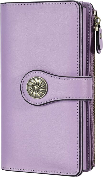 Travelambo Womens RFID Blocking Large Capacity Luxury Waxed Genuine Leather Clutch Wallet Multi Card Organizer (ReNapa Light Purple)